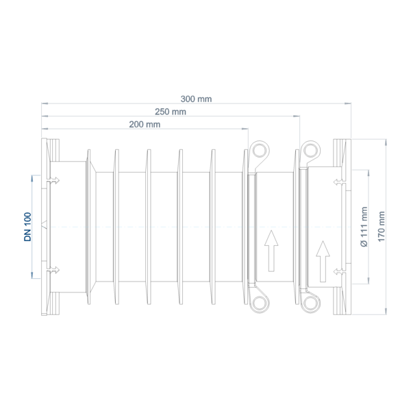 Baulänge 300 mm: Kürzbar auf Einbaulänge 250 bzw. 200 mm