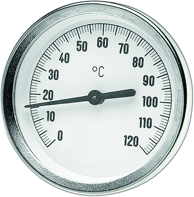 Bimetall-Zeigerthermometer 0-120° OR Ø 80 mm 1/2" x 50 mm Anschluß hinten