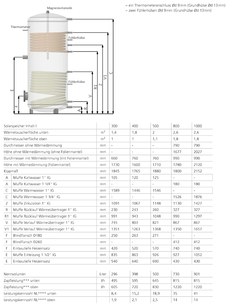 - Alle Speicher incl. 1 1/2" Muffe (werkseitig verschlossen) für Einschraubheizkörper