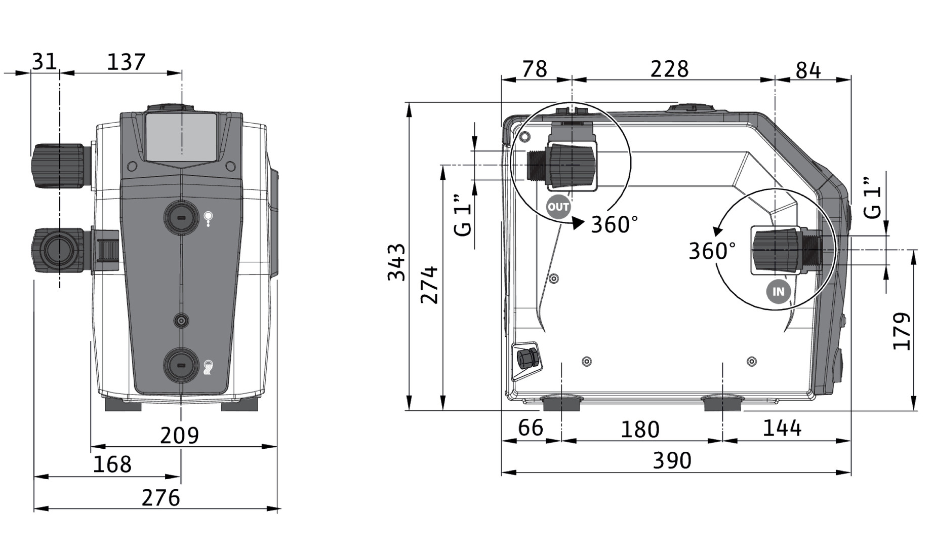 Druckseitiger Rohranschluss: G 1