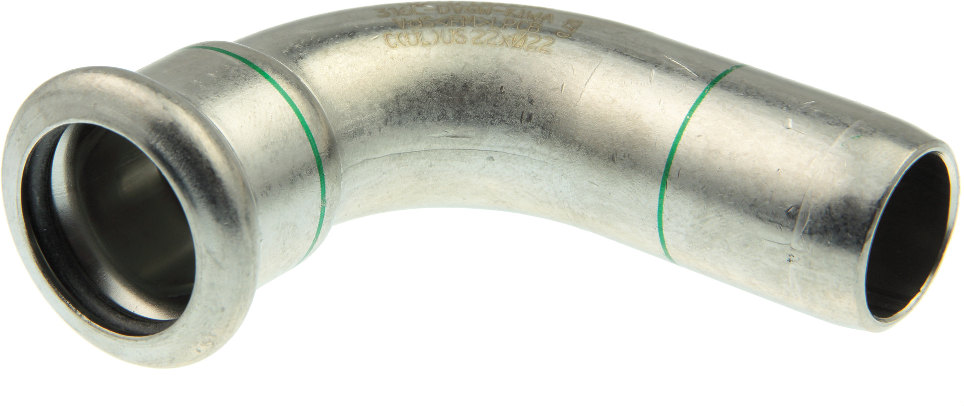 Bei VSH XPress R2711 handelt es sich um einen 90º Bogen aus Edelstahl mit einer Pressanschluss und einem Rohrende.