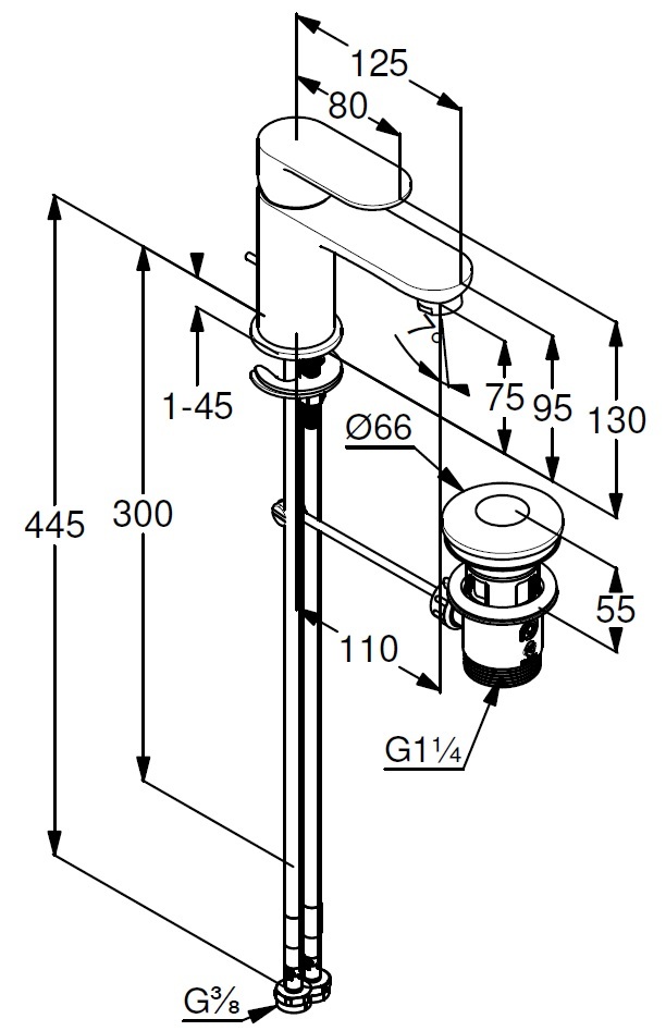 - Zugstangen-Ablaufgarnitur G1 1/4 Metall