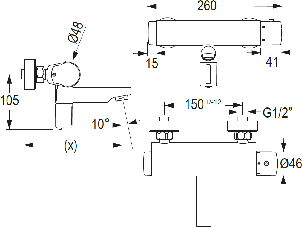 CONTI Lino Wandarmatur Aufputz W35 mit IR-Sensor, Thermostat chrom, Ausladung 200 mm 110.305.11